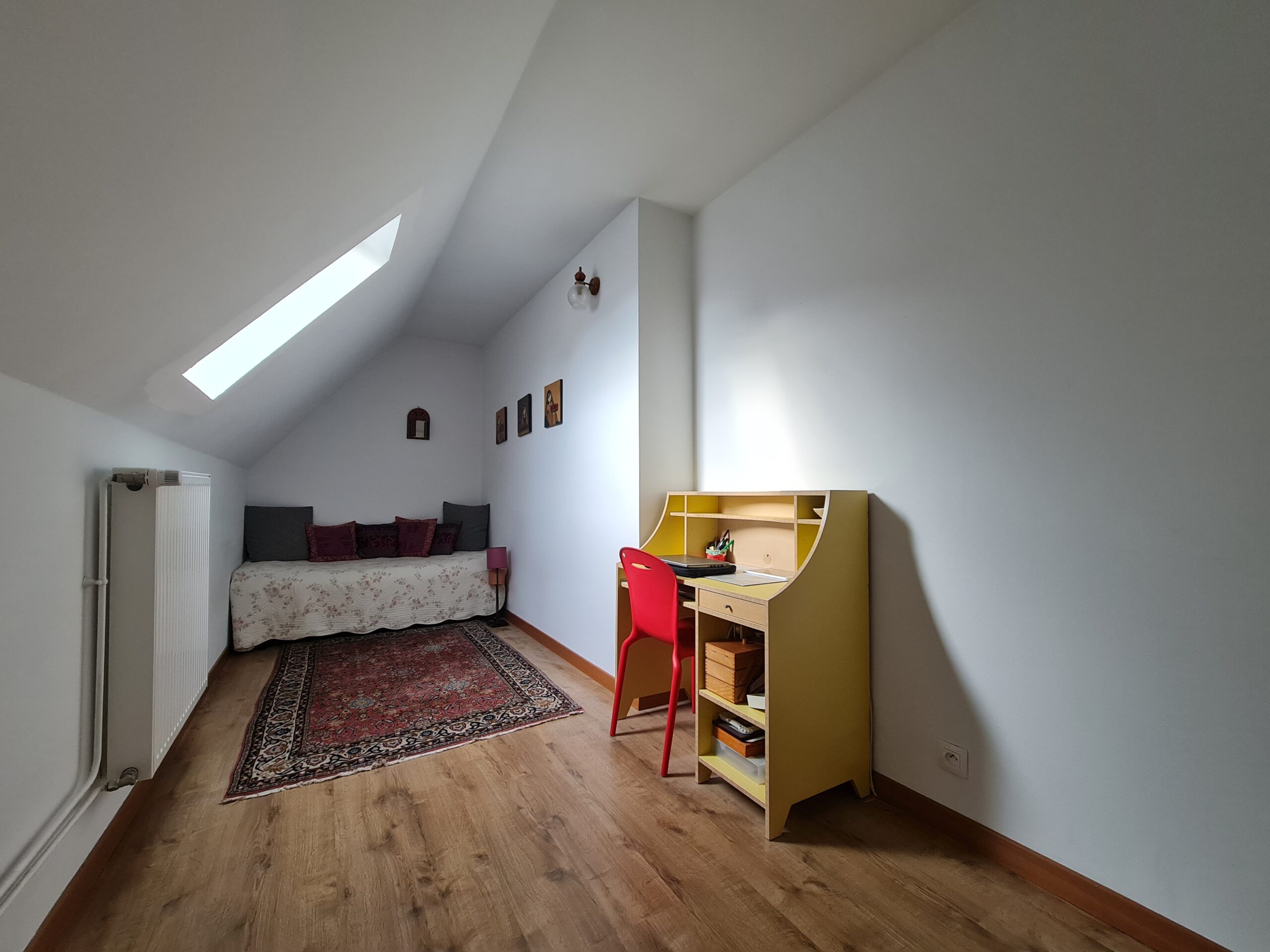 L’agencement comprend au premier niveau un hall d’entrée, une cuisine entièrement meublée et équipée ouverte sur un espace coin repas, un double salon, une salle de bain (meuble double vasque, baignoire, fenêtres) et un WC séparé. Au second niveau : 3 chambres confortables, une salle de douche moderne avec une vasque et un WC. Au sous-sol une buanderie, une grande pièce polyvalente (chambre d’amis, bureau ou espace jeux), un WC séparé, une cave, un garage 2 voitures, à l’extérieur une place de stationnement et stationnement possible dans la rue. Les combles sont isolés.